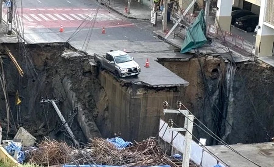A dramatic sinkhole swallowed a part of a central Bangkok roadway on Sept. 24, forcing Thailand’s Mass Fast Transit Authority (MRTA) to halt building on the town’s $2.2-billion Purple Line metro extension and order emergency stabilization.