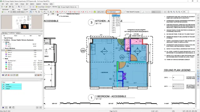 Typical Areas are nice for initiatives the place the identical objects seem in several areas of your plan, equivalent to a room or flooring that happens a identified variety of instances in a mission (assume workplaces, flats, or resort rooms which might be precisely the identical). As an alternative of drawing that very same takeoff a number of instances, you merely inform On-Display Takeoff what number of instances that typical space happens in every bid space, and your outcomes are immediately seen.