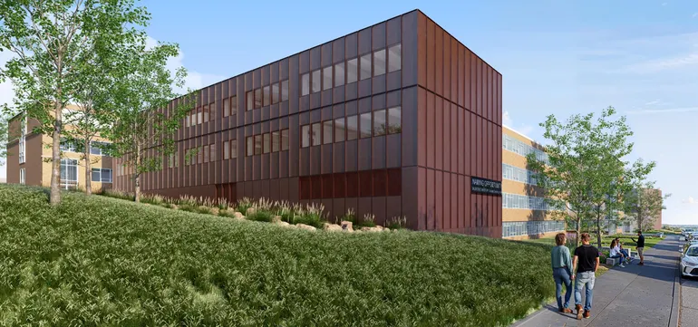 The Horace Mann constructing, vacant since 2018, will turn into a state-of-the-art facility for almost all of the Maguire Meservey School of Well being and Human Providers. It’s going to characteristic nursing simulation suites, bedside abilities and occupational remedy labs, pupil hubs and versatile school rooms, per the discharge. Crews can even replace the constructing with a newly created accessible campus-facing entrance.