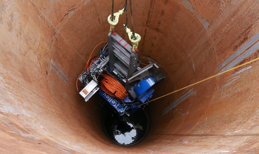 A vivid orange pre‑put in cable centerline on the tunnel invert permits navigation to inside a half‑inch to keep away from contact between the liners and current concrete tunnel partitions.